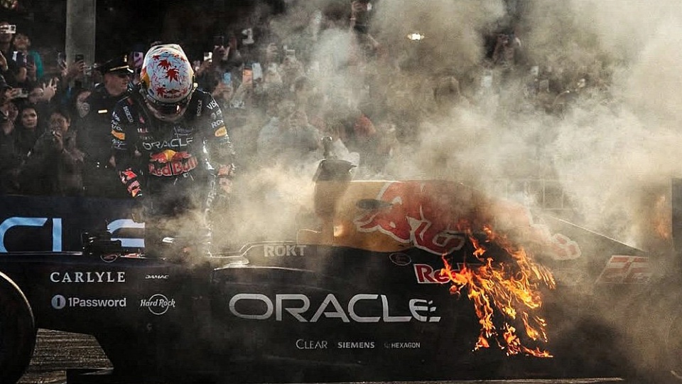 El evento en San Francisco, realizado en la céntrica zona de Marina Boulevard, buscaba homenajear el legado de Red Bull utilizando el icónico RB7, el coche con el que el alemán Sebastian Vettel logró el título mundial en el año 2011. Sin embargo, la jornada se vio opacada cuando el vehículo comenzó a despedir una densa humareda posterior tras una parada, convirtiéndose rápidamente en llamas que avanzaron por la parte trasera del auto. La rápida reacción de Tsunoda, quien se quitó los cinturones y descendió sin ayuda tras los gritos de advertencia de los fanáticos, evitó consecuencias físicas personales.