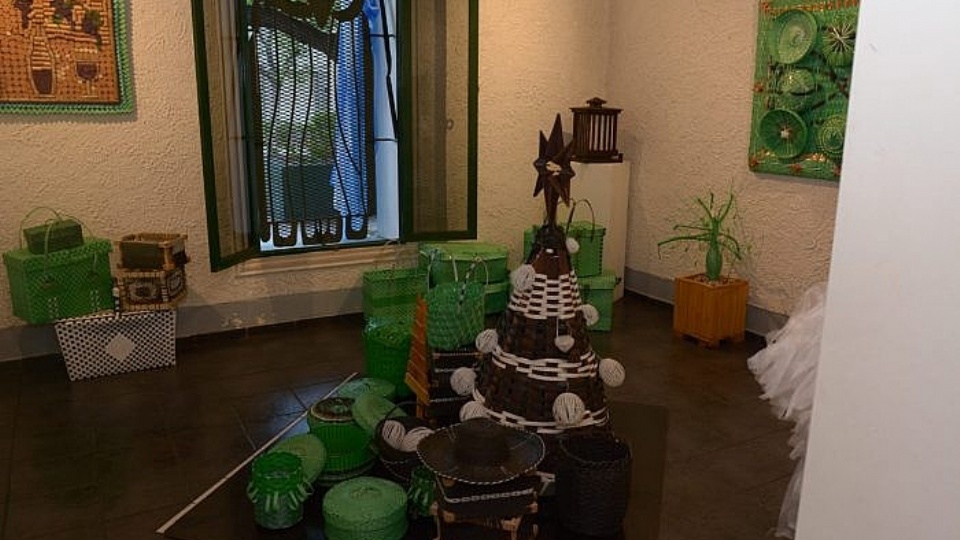 El taller de cestería de la Unidad de Producción Penitenciaria expone sus productos en esta muestra. Entre estos se encuentran canastas, cestos para residuos, canastos para la ropa, materas, canastos de compras, picneras, botelleros, organizadores, puntos verdes, carteras, sombreros, bauleras, tejidos para remplazo de media sombra en techos y en cierres perimetrales, tapicería y muebles.