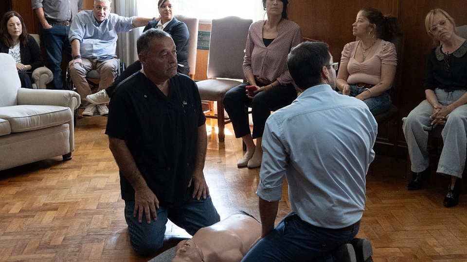 En tanto, Gustavo Loreto, el profesional a cargo, agregó: "Debemos conocer en primer lugar en qué casos una persona hace un paro cardíaco. Luego, asegurar la escena y comenzar con la cadena de ayuda, desde el llamado al 911 y uso del DEA, a la práctica de RCP con las maniobras de resucitación".