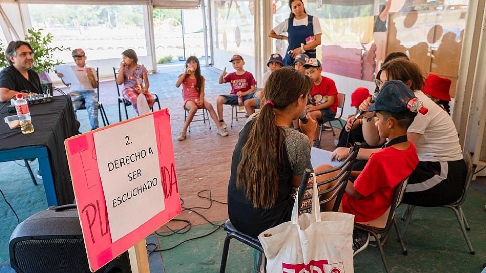 En esta ocasión el encuentro se realizó en la Estación de los Derechos, ubicada en el Parque Benegas. Allí, los chicos participaron de una jornada que combinó juego, escucha y reflexión.