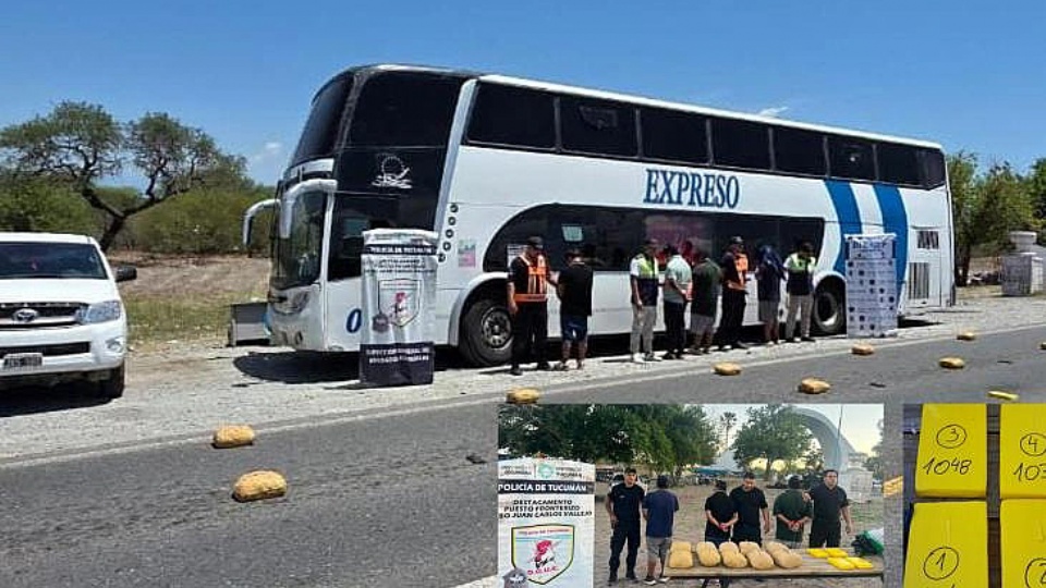 Coordinadores de un tour que había salido de Salta quedaron expuestos en un control. La Policía encontró marihuana y cocaína en dos bultos del equipaje.