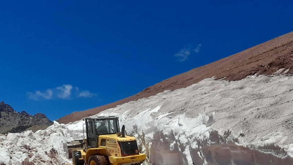 Recién cuando el deshielo está muy avanzado y la nieve ha escurrido casi en su totalidad, los operarios de Vialidad Mendoza, con la colaboración de la Dirección Nacional de Vialidad, ingresan al circuito para quitar la nieve restante y abrirse paso entre los grandes bloque de hielo aún indemnes.