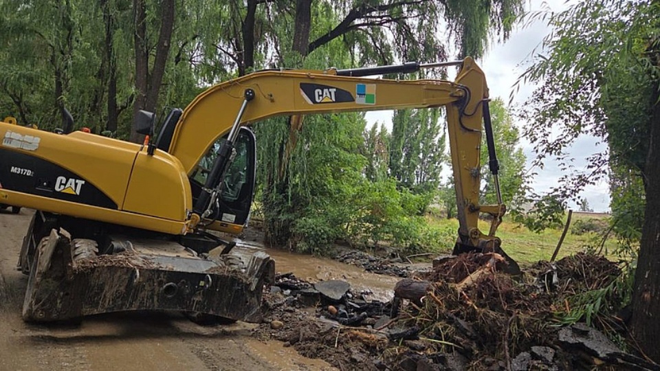 En conjunto con el Municipio de Tupungato, el personal de Hidraúlica trabaja en los arroyos El Molino y Anchayuyo con el objetivo de sacar los restos de sedimento que dejó la tormenta y reparar los daños que se produjeron en la orilla del cauce.
