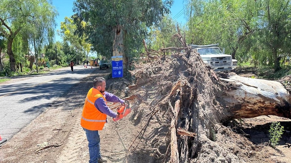 El sábado a primera hora, junto a la Municipalidad de San Martín, la Cooperativa Eléctrica Algarrobo Grande, Edeste, Aysam, la Dirección de Biodiversidad y la Policía de Mendoza, se intervino de forma conjunta para liberar las cocheras y zonas peatonales que habían quedado bloqueadas, además de reconectar los servicios de luz y agua.