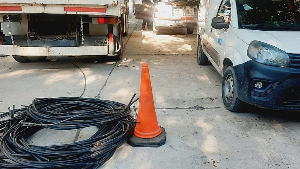 Los sospechosos fueron sorprendidos mientras cargaban 150 metros de tendido eléctrico en un camión y una camioneta. La Policía secuestró vehículos y herramientas y evitó una pérdida estimada en $12 millones.