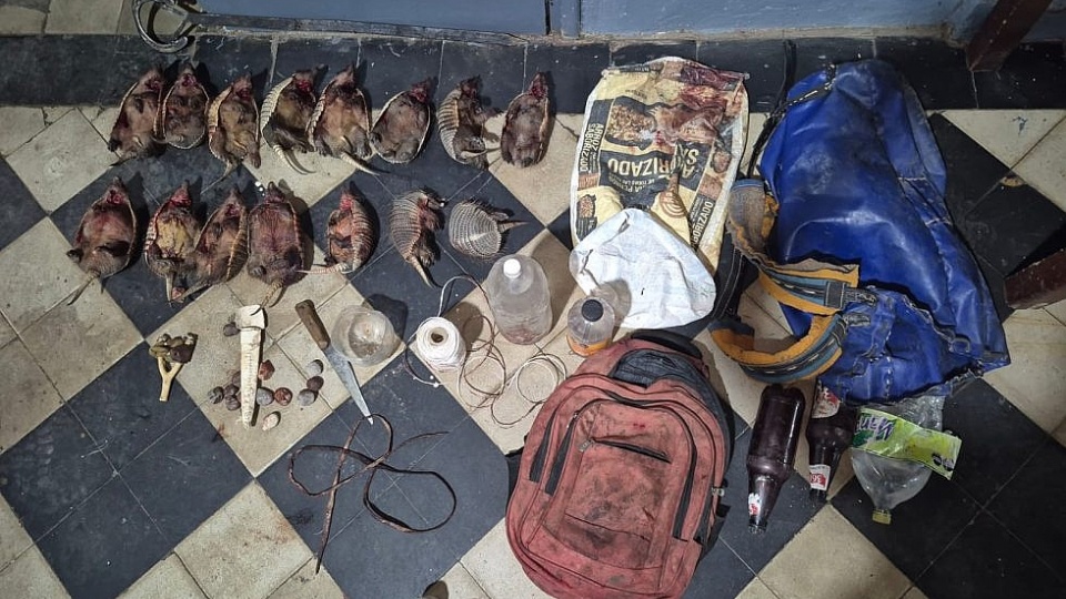 Al regresar al lugar, el personal observó un bolso que habría sido descartado durante la huida, en cuyo interior encontraron 10 piches muertos. Posteriormente, al requisar la camioneta, hallaron otro morral que contenía 5 animales más, junto a botellas de agua y un cuchillo.