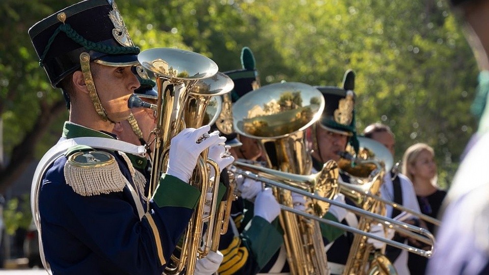 El ministro de Educación, Cultura Infancias y DGE, Tadeo García Zalazar, participó este jueves en el relevo de la guardia de la bandera histórica del Ejército de los Andes que se realiza en la explanada de la Casa de Gobierno, en una emotiva ceremonia que homenajea a la gesta sanmartiniana que cuenta con desfiles militares, música y la participación de escuelas, ciudadanos y turistas.