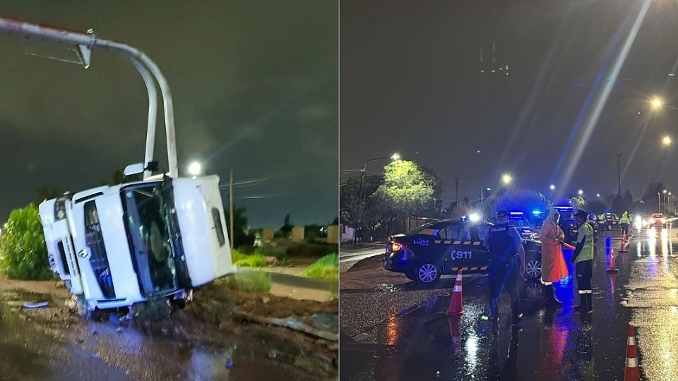 El hecho ocurrió después de la 1, en la intersección de calle Terrada y Juan José Paso, en Carrodilla. Un llamado al 911 alertó sobre la presencia de un camión volcado y la posible existencia de una persona atrapada.
