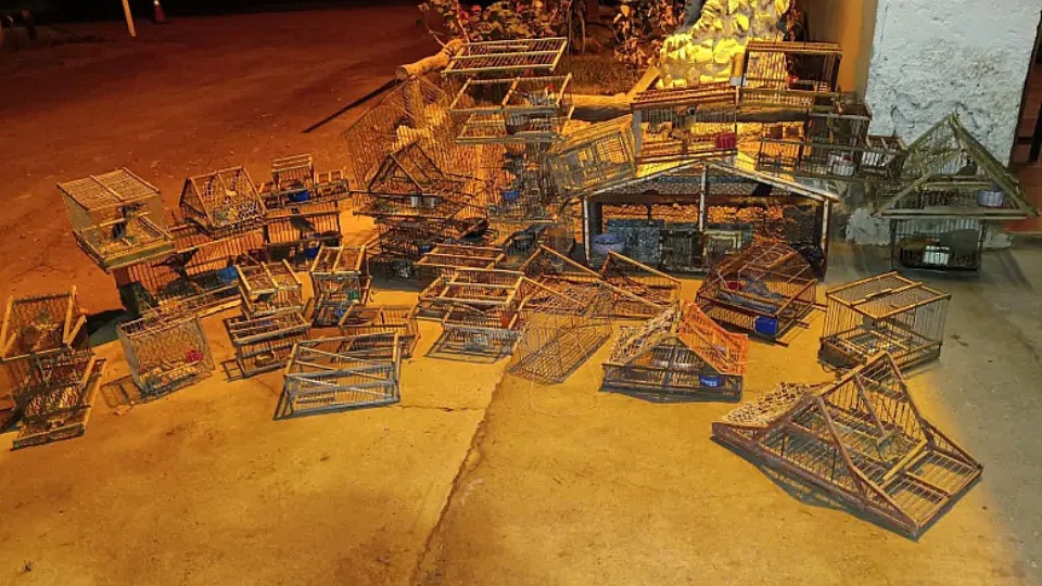 En el patio de la vivienda se encontraron jaulas y tramperos con especies como siete cuchillos, tordos y diucas, que ahora serán rehabilitadas.